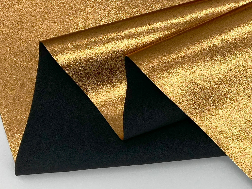 金属の光沢感を持つ全面に箔加工を施したスエード素材です。