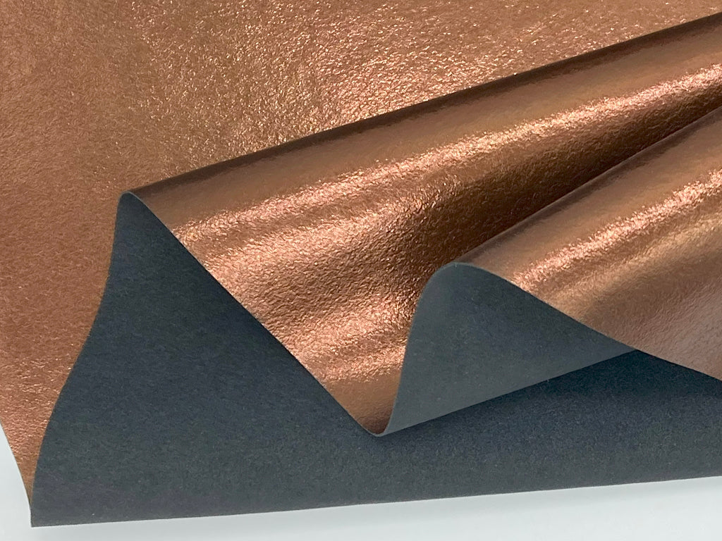 金属の光沢感を持つ全面に箔加工を施したスエード素材です。