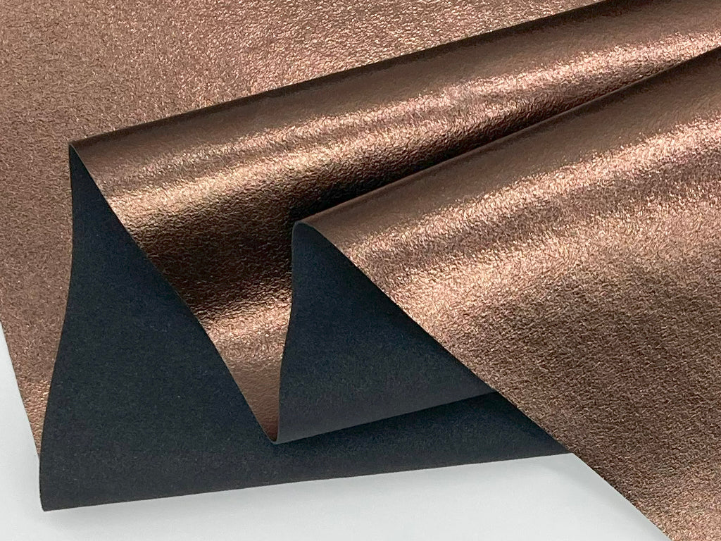 金属の光沢感を持つ全面に箔加工を施したスエード素材です。