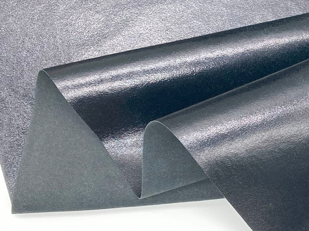 金属の光沢感を持つ全面に箔加工を施したスエード素材です。