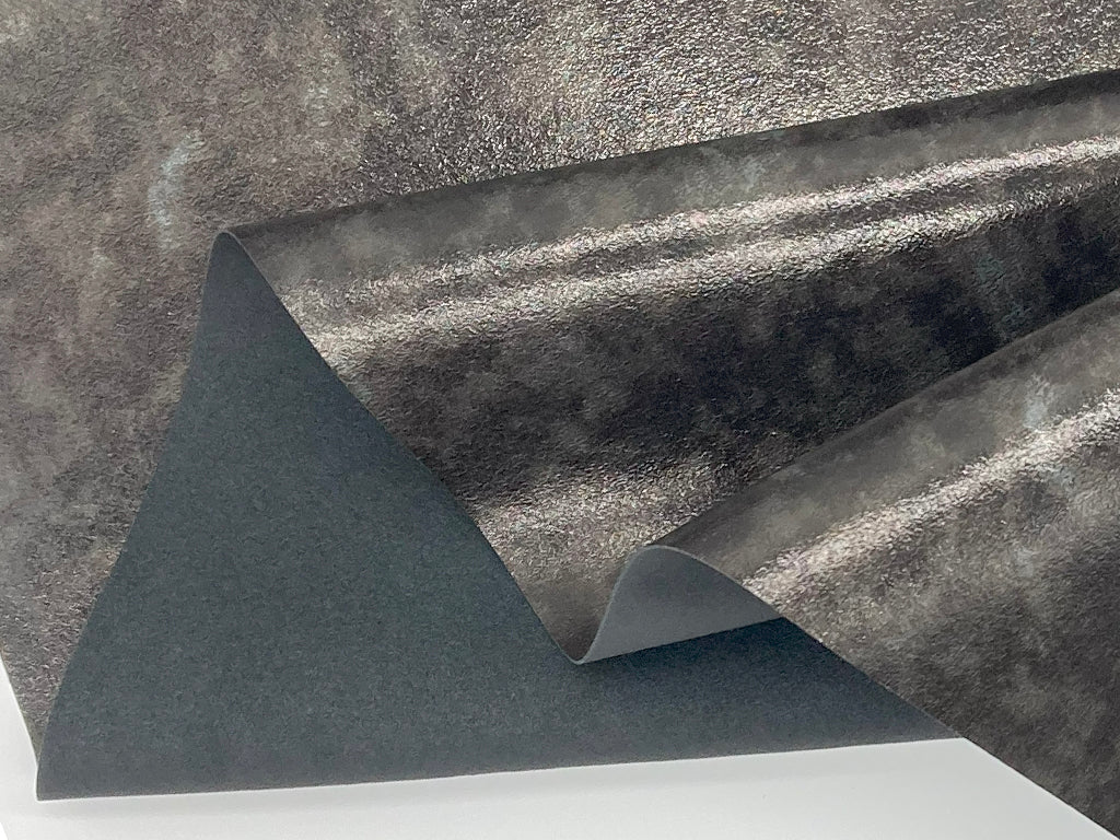 金属の光沢感を持つ全面に箔加工を施したスエード素材です。
