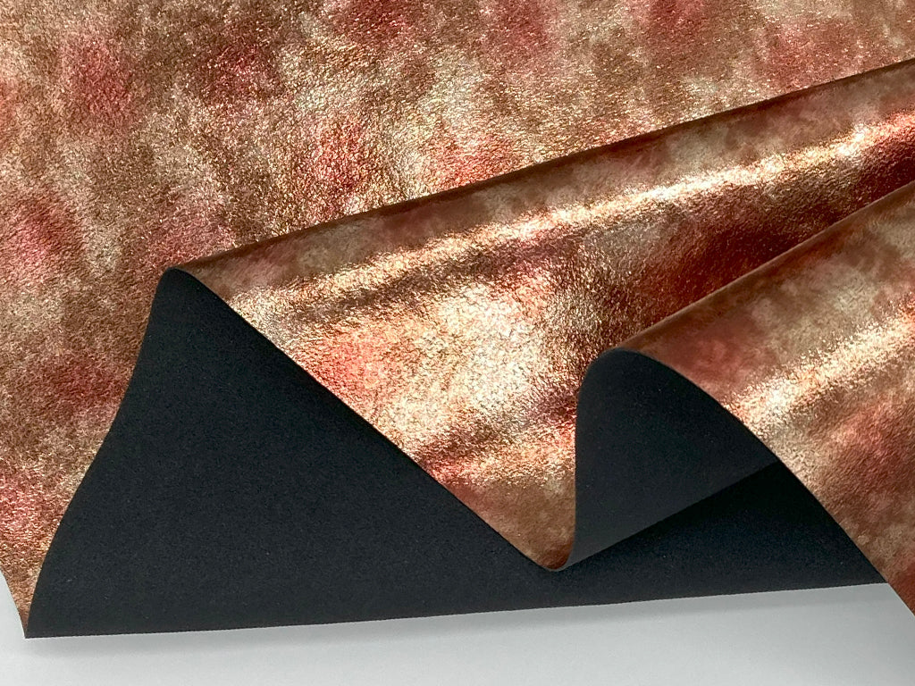 金属の光沢感を持つ全面に箔加工を施したスエード素材です。