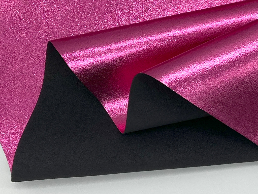 金属の光沢感を持つ全面に箔加工を施したスエード素材です。