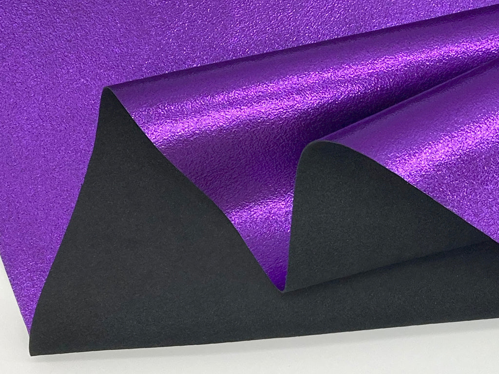 金属の光沢感を持つ全面に箔加工を施したスエード素材です。