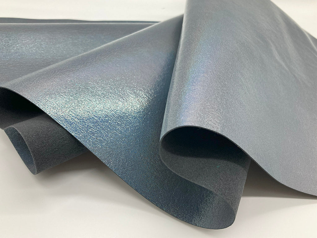 金属の光沢感を持つ全面に箔加工を施したスエード素材です。