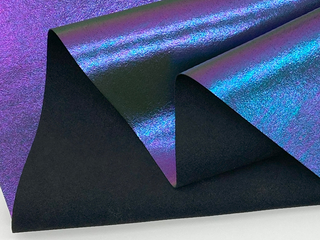 金属の光沢感を持つ全面に箔加工を施したスエード素材です。